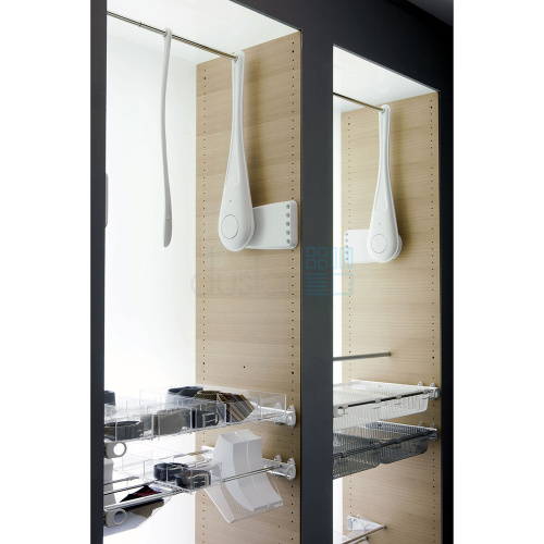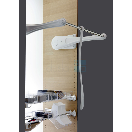 • Удобно использовать для избавления от «мертвых зон» в высоких шкафах – пантограф доставляет вещи в зону досягаемости, что позволяет экономить пространство.