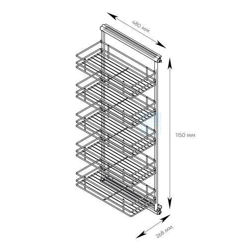 • Размер изделия с учетом направляющих: ширина 268 мм, глубина 480 мм, высота 1150 мм.