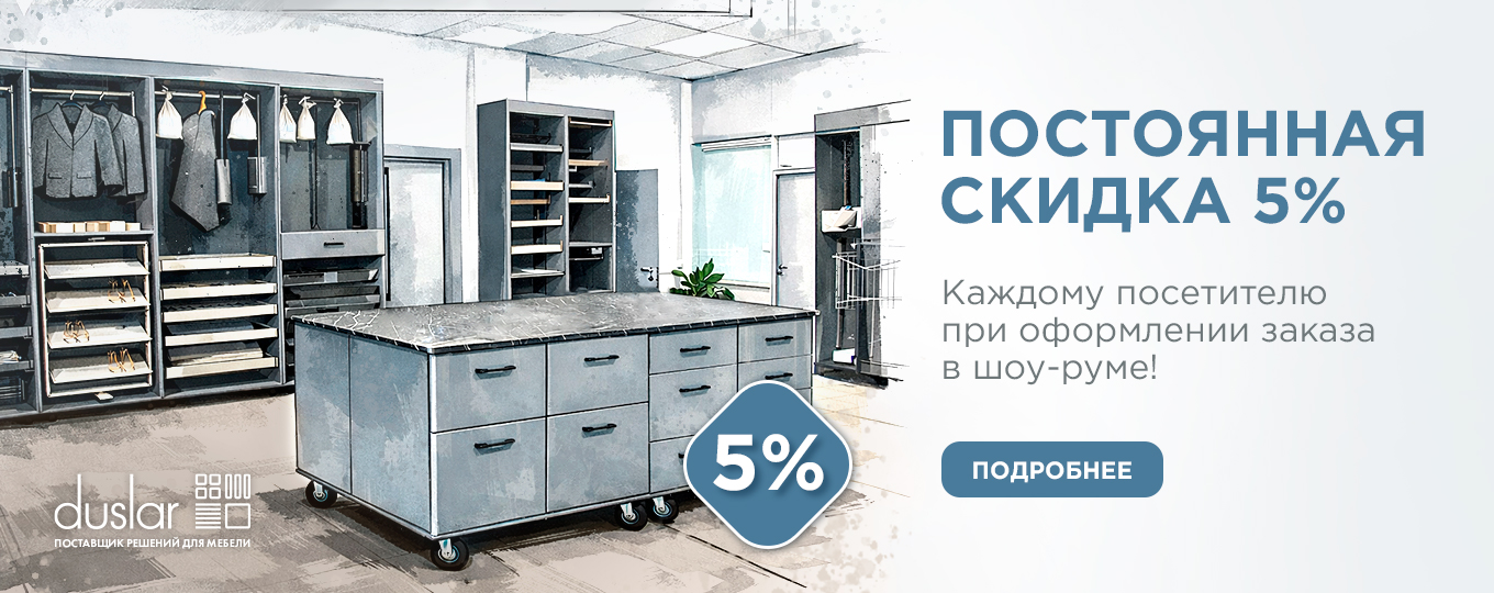 Компания «Duslar» – это оптово-розничный интернет-магазин фурнитуры, аксессуаров и комплектующих для мебели. Duslar является официальным поставщиком готовых функциональных решений высокого класса от различных европейских зарубежных производителей.