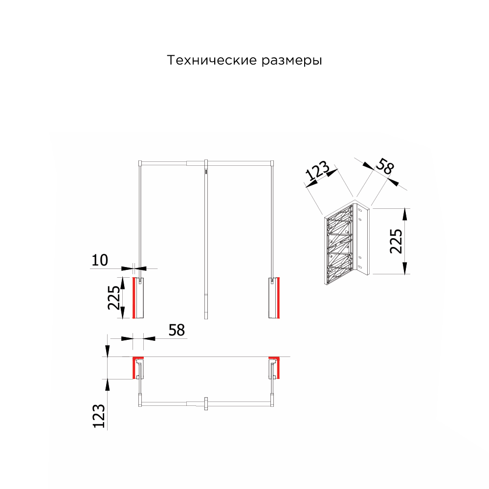 • Габариты крепления: ширина 58 мм, глубина 123 мм, высота 225 мм.