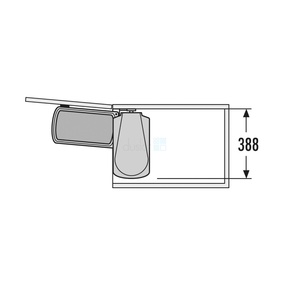 • Габариты ведра: ширина 388 мм, глубина 203 мм, высота 420 мм (450 мм с поднятой крышкой).
