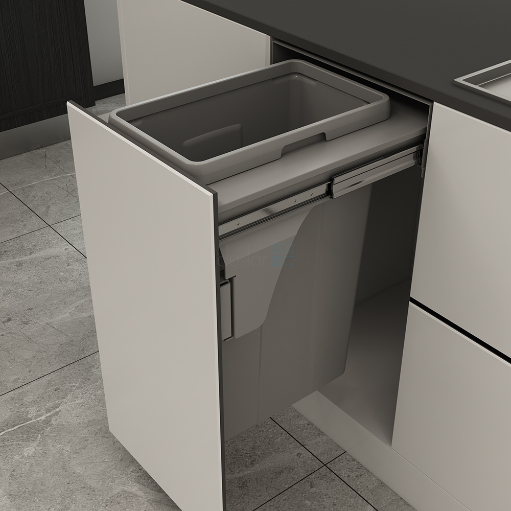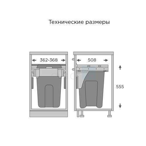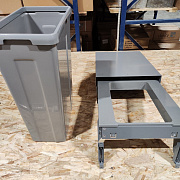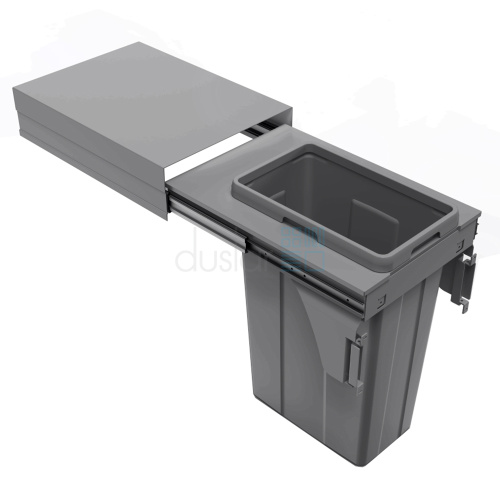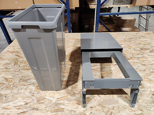 • Ведро выдвигается вместе с фасадом, а крышка остается внутри корпуса.