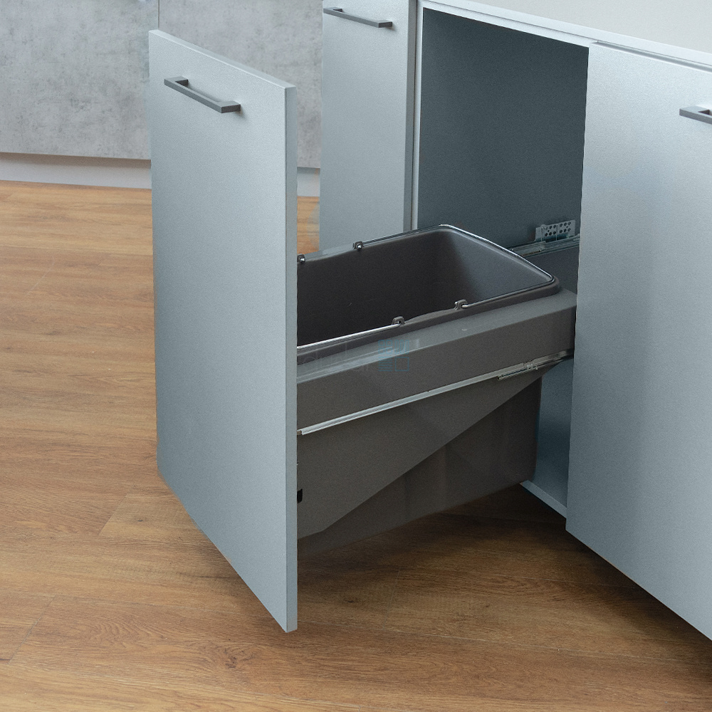 - Ведро полностью выдвигается из корпуса, обеспечивая к нему полный доступ, что позволяет легко выбросить мусор.