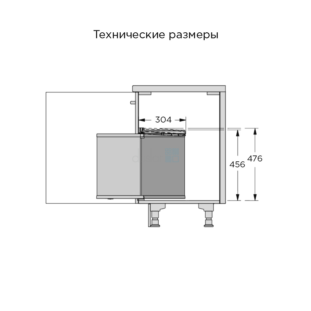 • Габариты ведра: ширина 290 мм, глубина 304 мм, высота 456 мм (476 мм с поднятой крышкой).