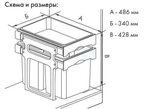 • Габариты системы с направляющими: ширина 340 мм, глубина 486 мм, высота 428 мм.