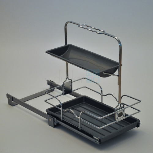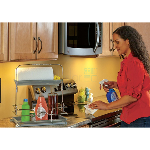 • Содержимое нижнего лотка надежно фиксируется высокими ограничительными бортиками, в верхнем лотке удобно хранить рулонные полотенца или губки.