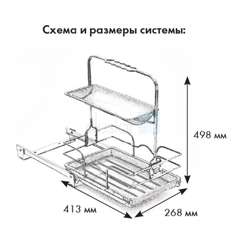• Габариты системы без учета рамы: ширина 268 мм, глубина 413 мм, высота 498 мм.