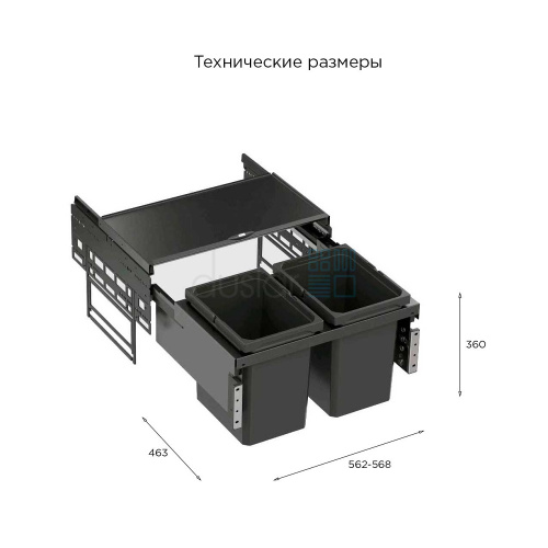 • Габариты системы с рамой: ширина 562-568 мм, глубина 463 мм, высота 360 мм.