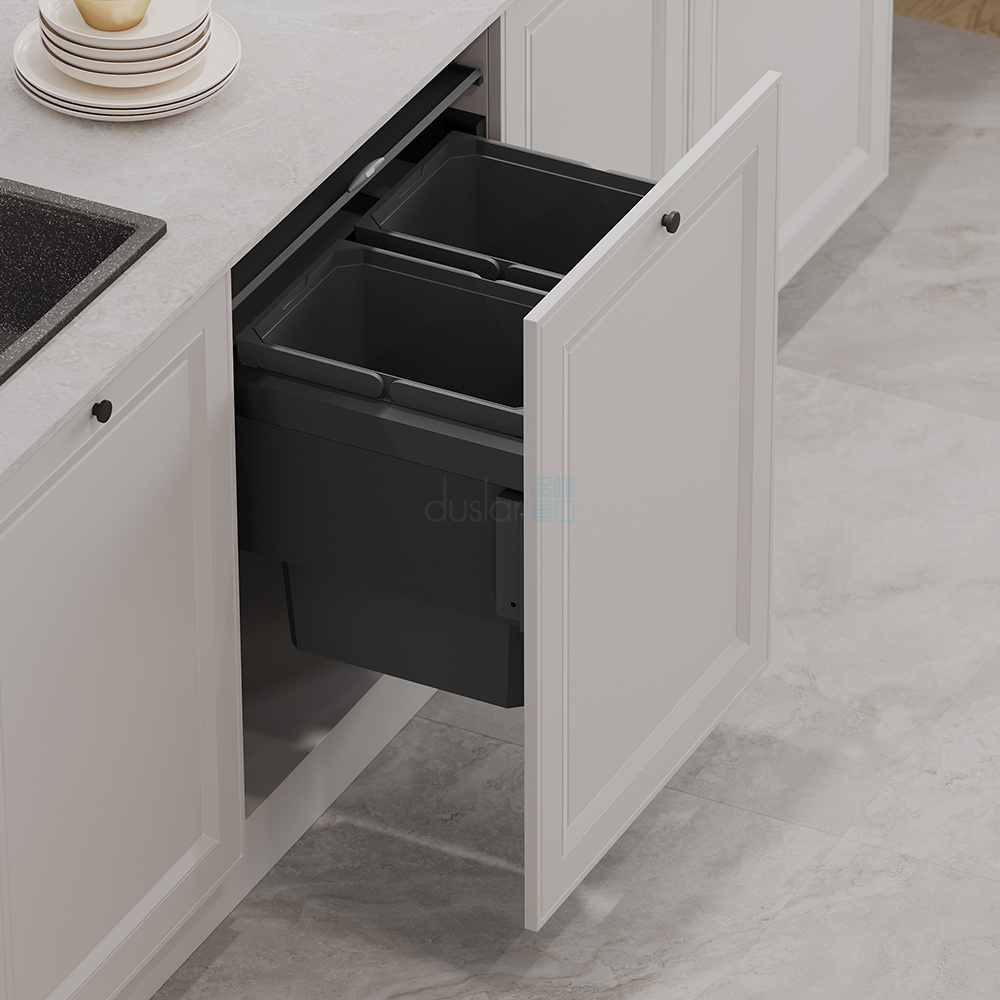 • Ведра выдвигаются из корпуса, обеспечивая к ним полный доступ, что позволяет легко выбросить мусор.