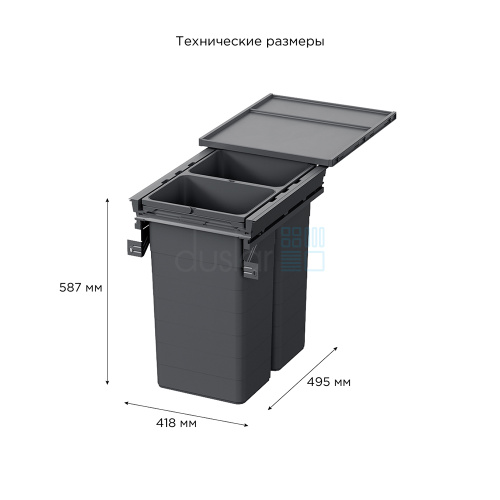 • При выдвижении ведер крышка остается на месте и может использоваться как полка для хранения бытовых принадлежностей.