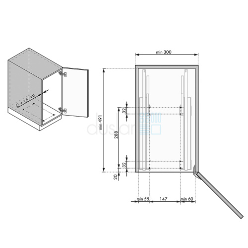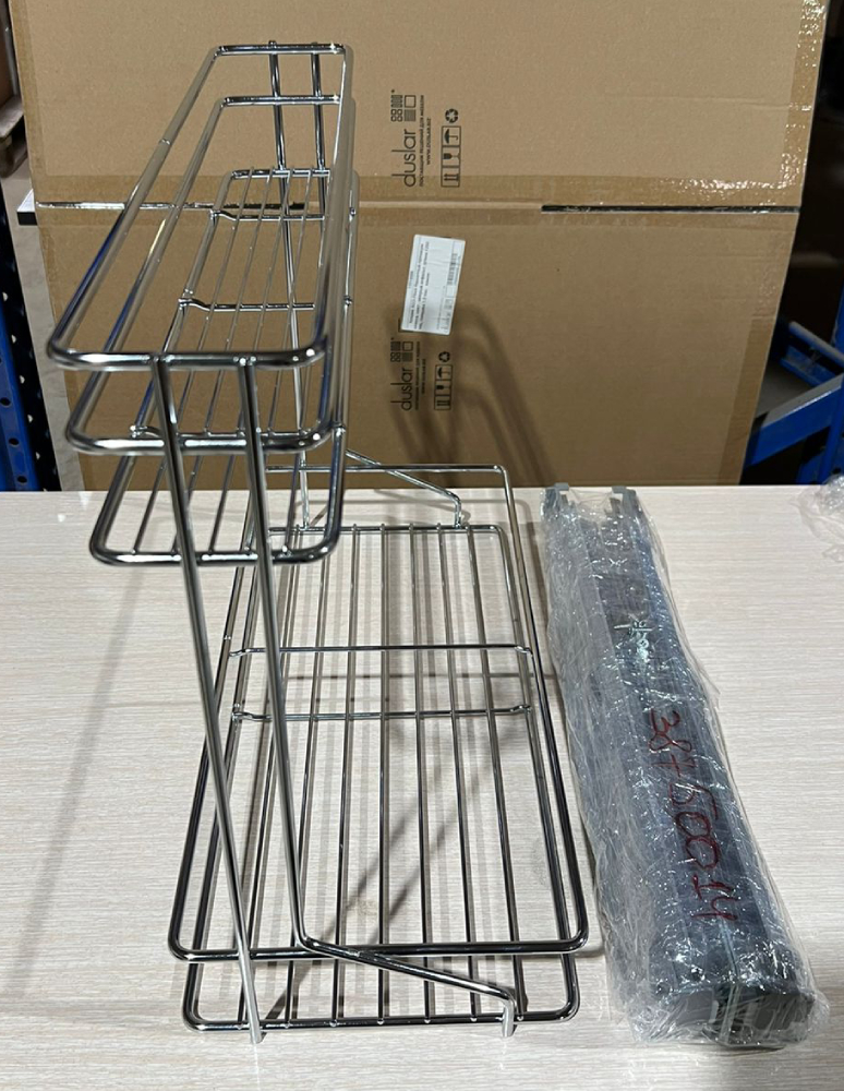 Комплектация: рама с 2-я корзинами, 1 шт., направляющие Hettich Quadro полного выдвижения с плавным закрыванием, 2 шт., фиксаторы на направляющих, 2 шт., крепления ко дну корпуса, 4 шт.