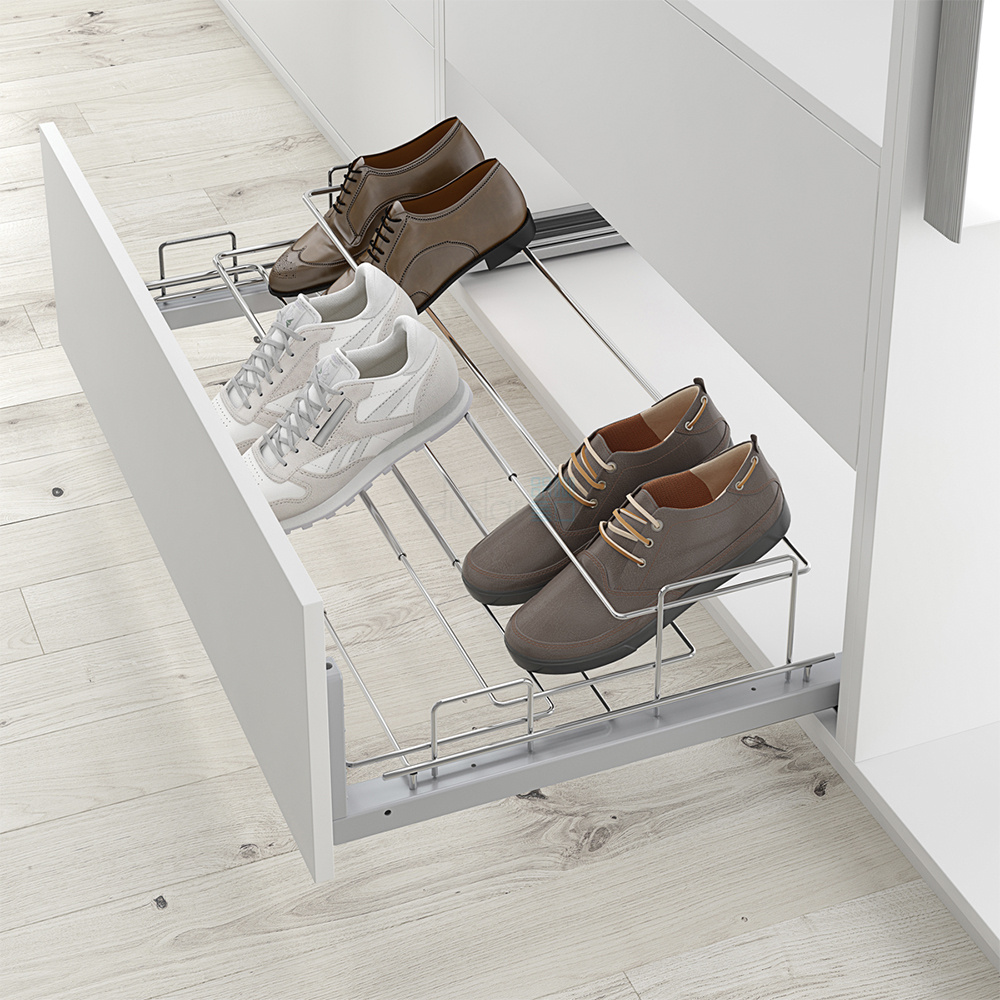 • По сравнению с обычной полкой обувница выдвигается и обеспечивает удобный и быстрый доступ к хранимой обуви.