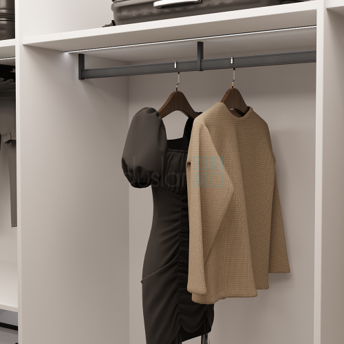 • Удлиненная форма держателя продумана таким образом, что при размещении вешалки на штанге, она не будет касаться верхней полки.