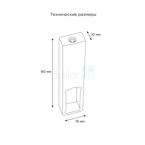 • Габариты держателя: ширина 19 мм, глубина 10 мм, высота 90 мм.