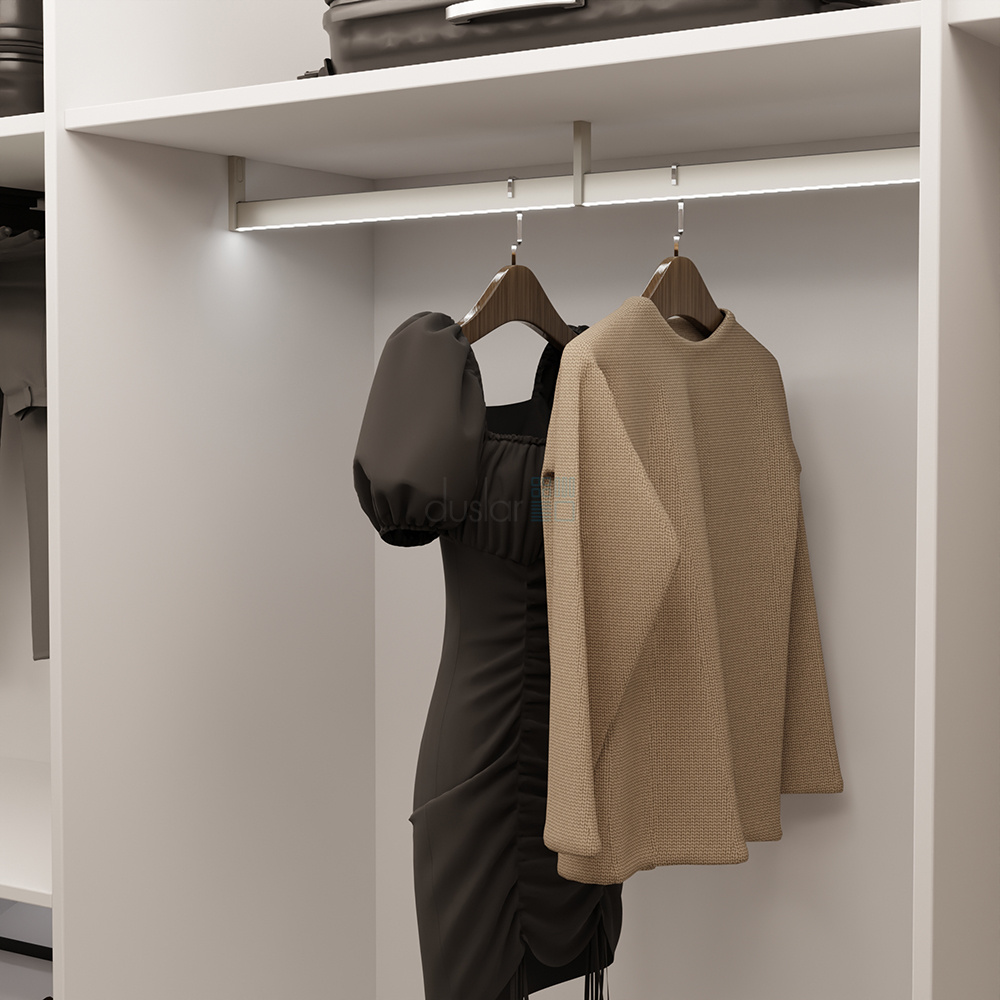 • Удлиненная форма держателя продумана таким образом, что при размещении вешалки на штанге, она не будет касаться верхней полки.