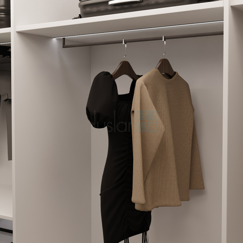 • Подходит для установки как в открытые гардеробные, так и в шкафы-купе, шкафы с раздвижными и распашными фасадами.
