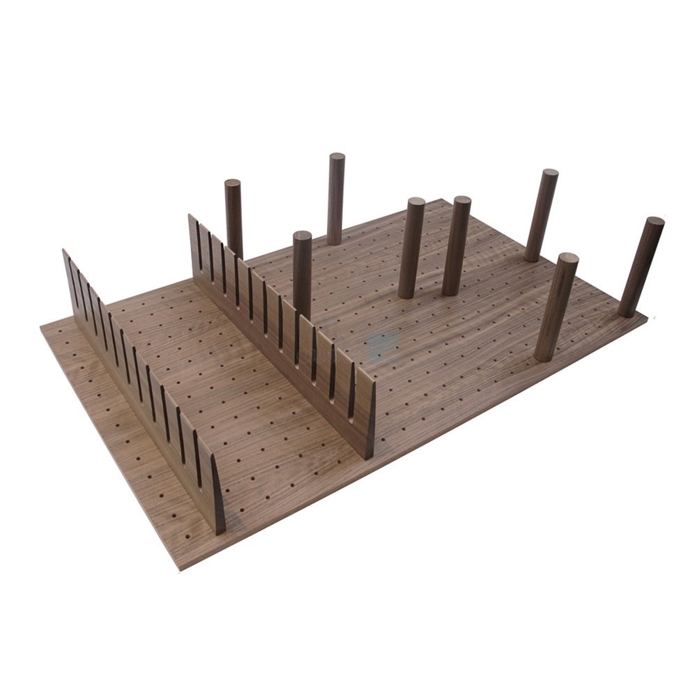 • Разделители-столбики и держатель для тарелок фиксируются к основанию с помощью крепежных винтов и легко переставляются в зависимости от размеров хранимых предметов.