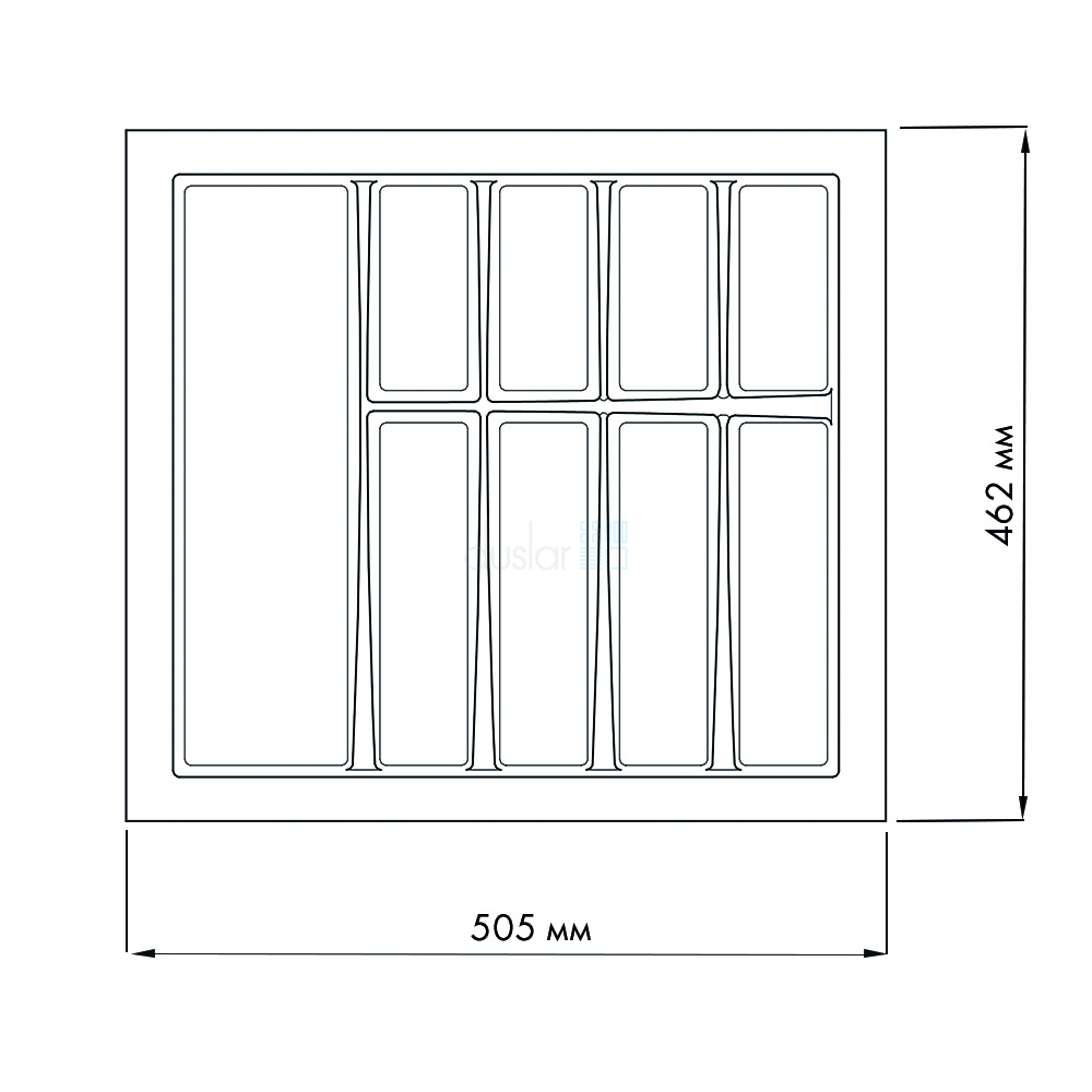 • Лоток имеет практичную форму отделений и узкие края, что позволяет максимально использовать полезное пространство ящика, избавляя от мертвых зон.
