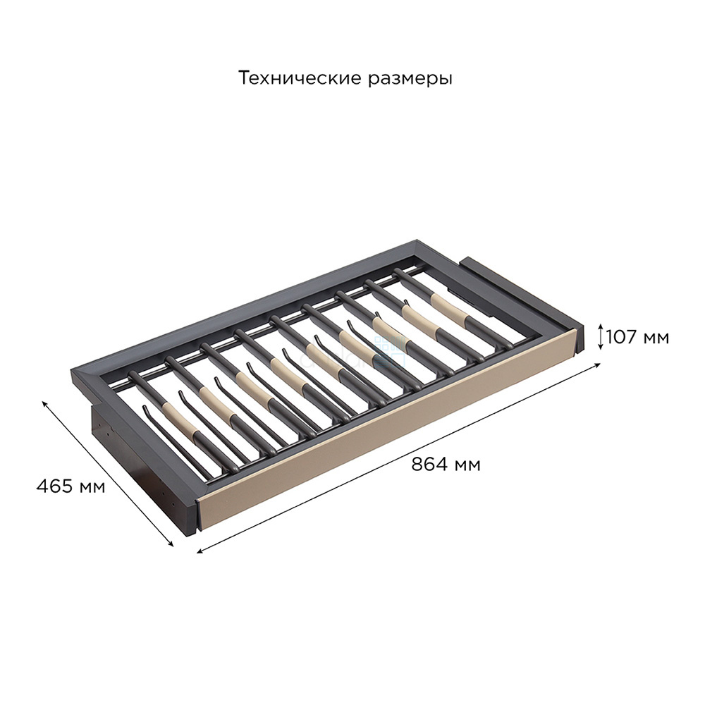 - Габариты держателя с направляющими: ширина 864 мм, глубина 465 мм, высота 107 мм.
