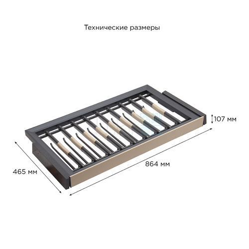 - Сочетание металлических элементов в цвете антрацит и бежевой отделки из экокожи придаёт брючнице премиальный внешний вид.