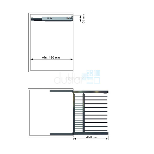 - Возможна установка в корпуса с распашным фасадом, для этого необходимо использовать дистанционную планку (арт. 42103314 приобретается отдельно).