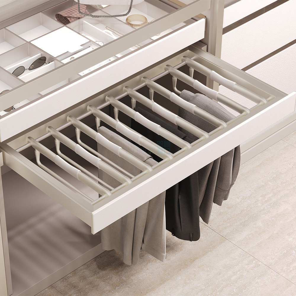 • Рекомендуем установить несколько выдвижных брючниц и ящиков из коллекции друг над другом для организации удобного хранения в шкафу или гардеробной.