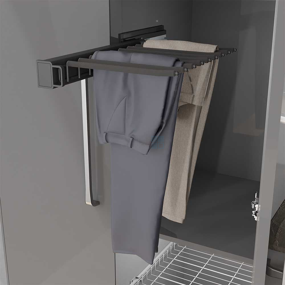 • Брючница выдвигается из шкафа и обеспечивает удобный доступ к содержимому.
