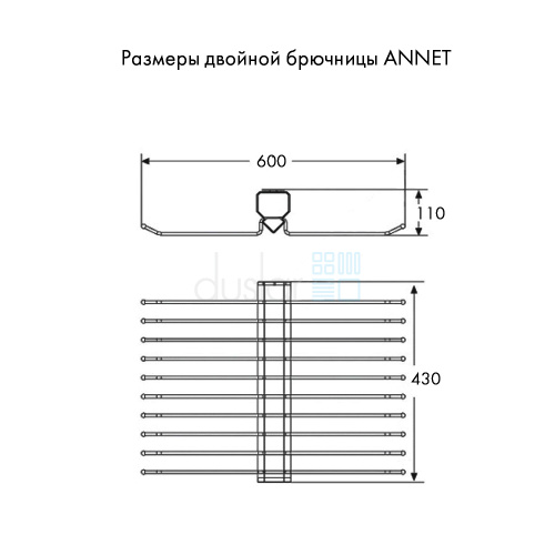 • Габариты брючницы с направляющей: ширина 600 мм, глубина 430 мм, высота 110 мм.