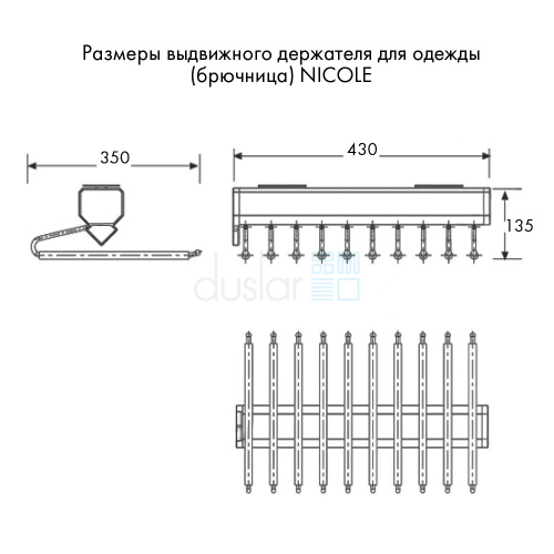 • Противоскользящие накладки на рейках предотвращают соскальзывания одежды.