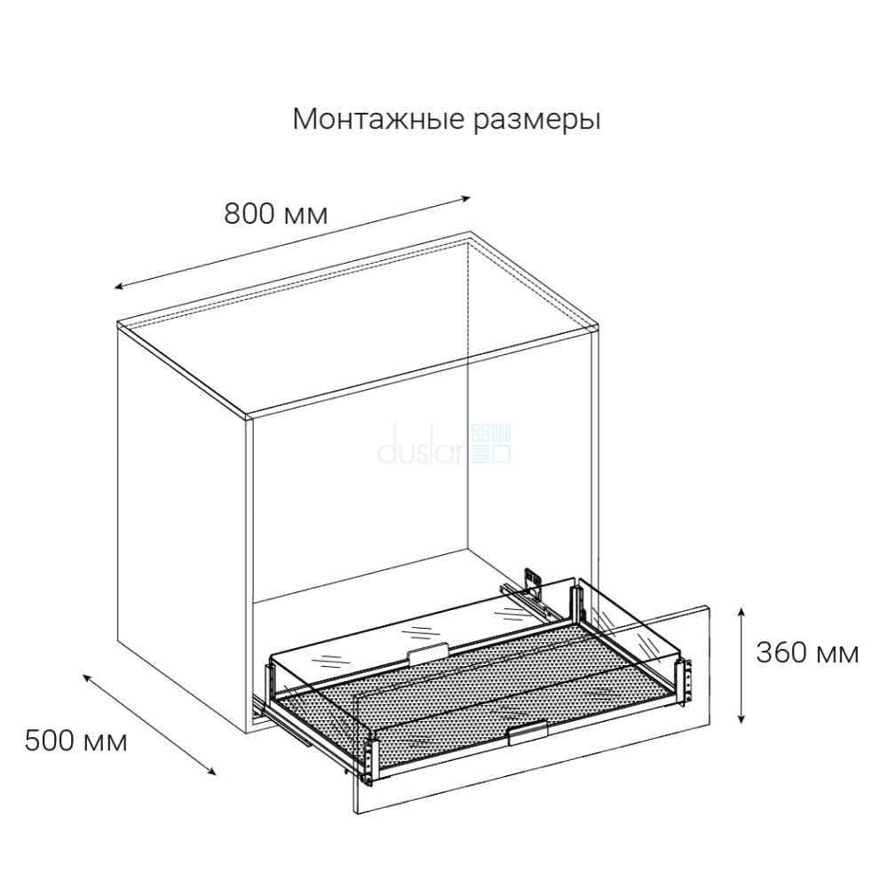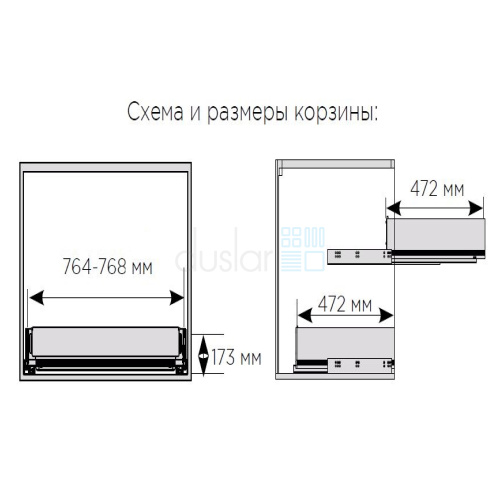 • Габариты корзины с направляющими: ширина 764-768 мм, глубина 472 мм, высота 173 мм.