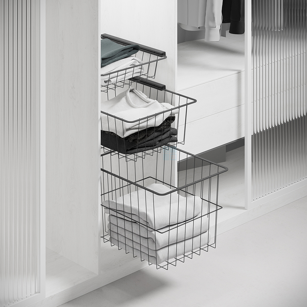 • Выдвижная корзина обеспечивает удобный и быстрый доступ к хранимой одежде или предметам.