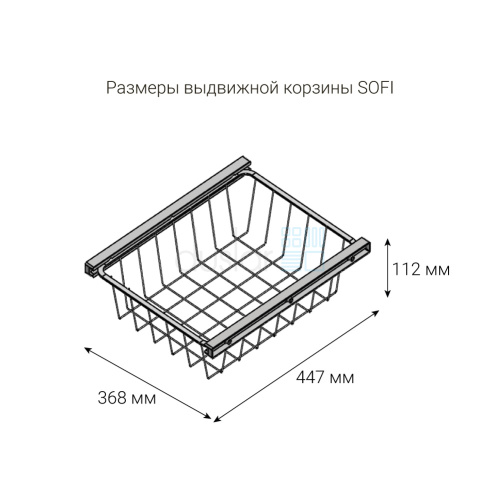 • Габариты корзины с направляющими: ширина 368 мм, глубина 447 мм, высота 112 мм.