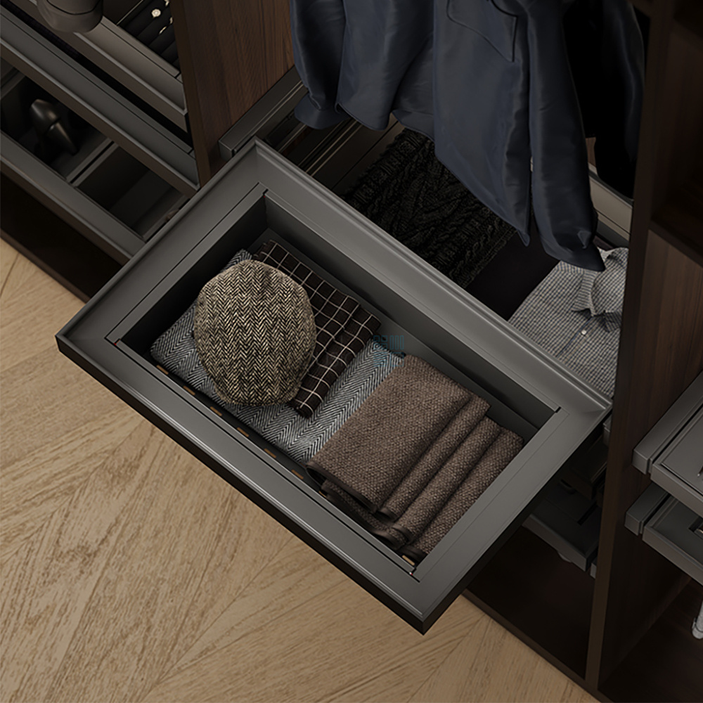 • Выдвижной ящик можно устанавливать во все типы шкафов – с распашными фасадами, открытые гардеробные и в шкафы-купе.