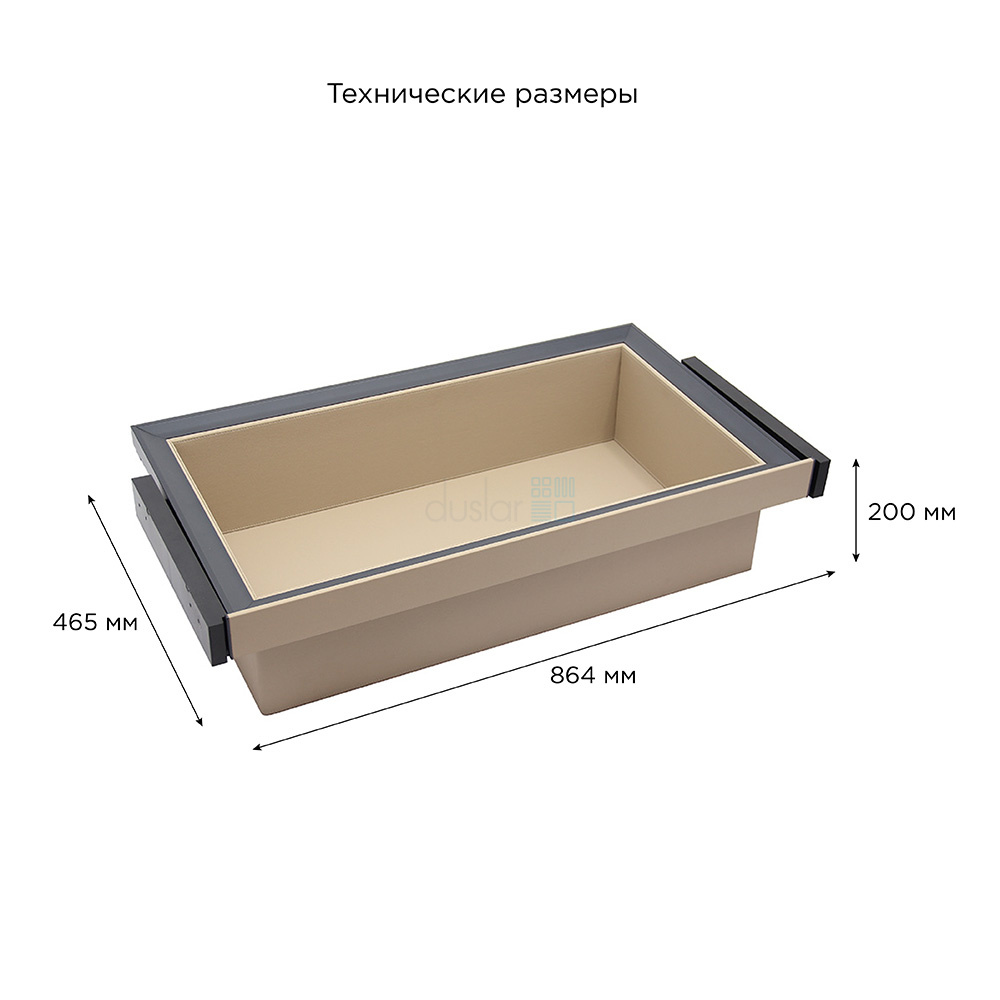 - Габариты ящика с направляющими: ширина 864 мм, глубина 465 мм, высота 200 мм.