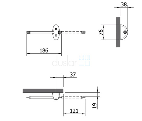 • Габариты держателя: ширина 38 мм, глубина 186 мм, высота 76 мм.