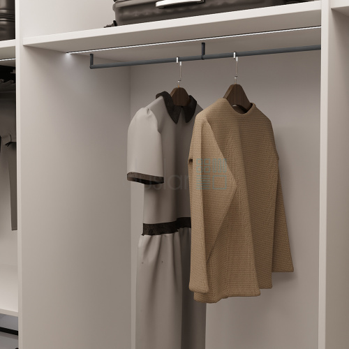 • Удлиненная форма держателя продумана таким образом, что при размещении вешалки на штанге, она не будет касаться верхней полки.