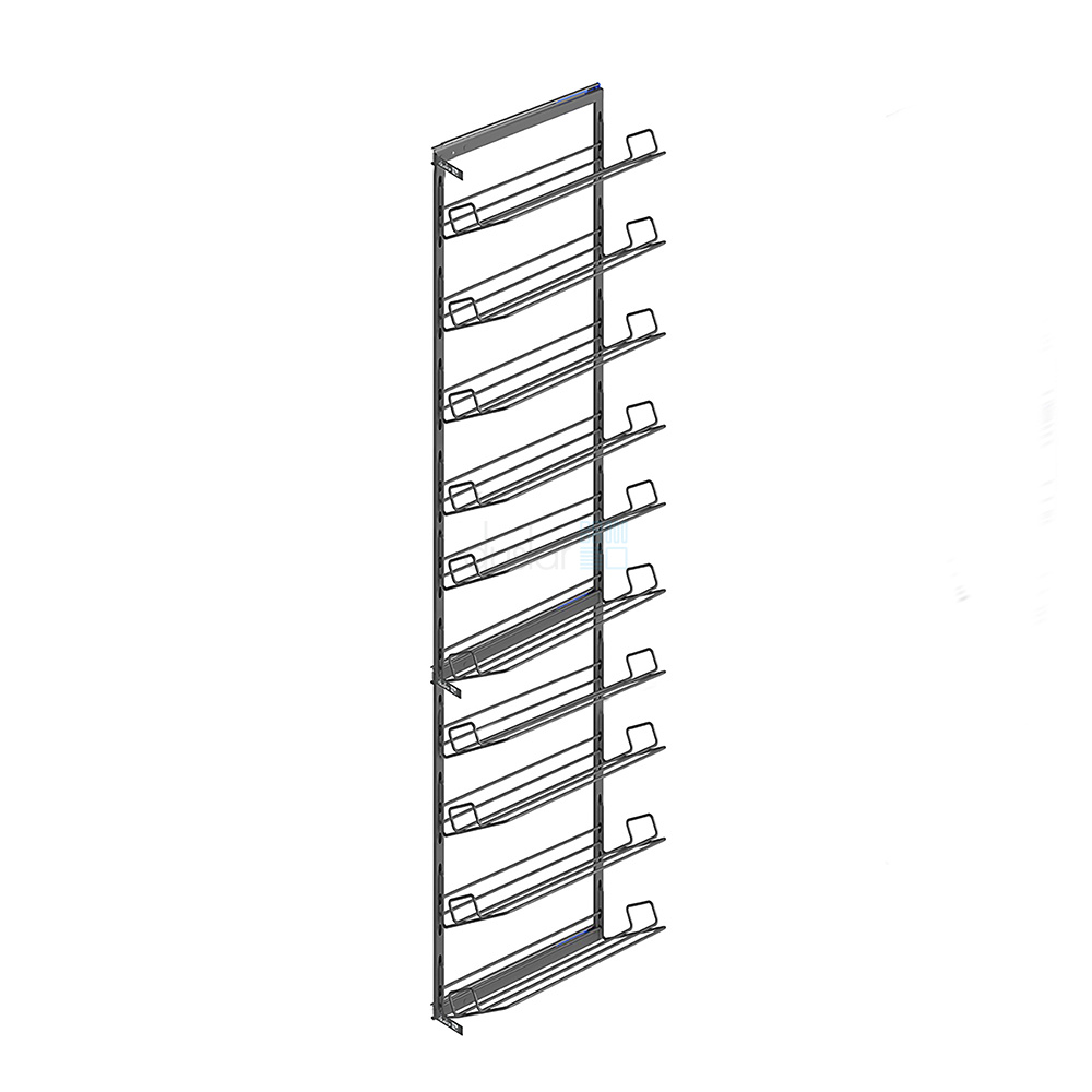 • Функциональное решение для организации хранения большого количества обуви в высоких узких шкафах с выдвижным фасадом.
