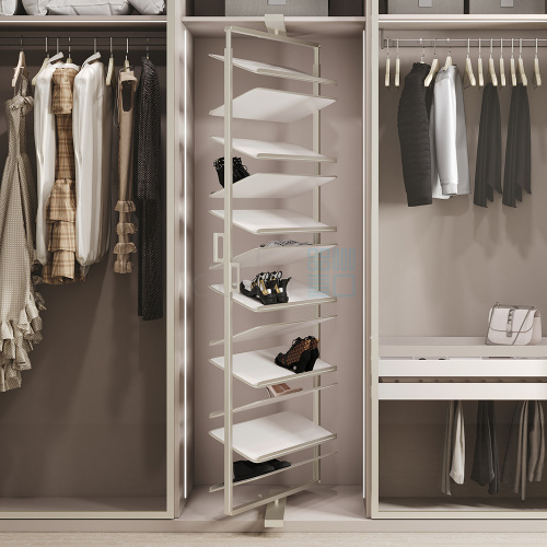 • Уникальная система для хранения обуви: при выдвижении поворачивается и обеспечивает удобный доступ к каждой паре обуви.