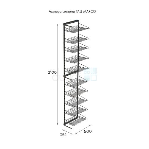 • Габариты системы с направляющими: ширина 352 мм, глубина 500 мм, высота 2100 мм.
