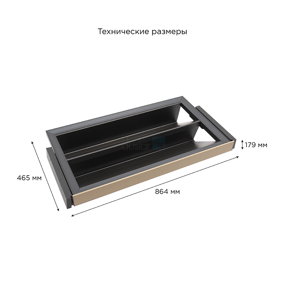 - Габариты изделия: ширина 864 мм, глубина 465 мм, высота 179 мм.
