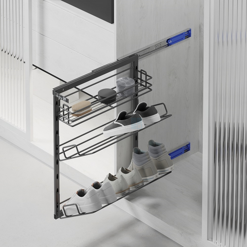 • По сравнению с обычной полкой обувница выдвигается и обеспечивает удобный и быстрый доступ к хранимой обуви.