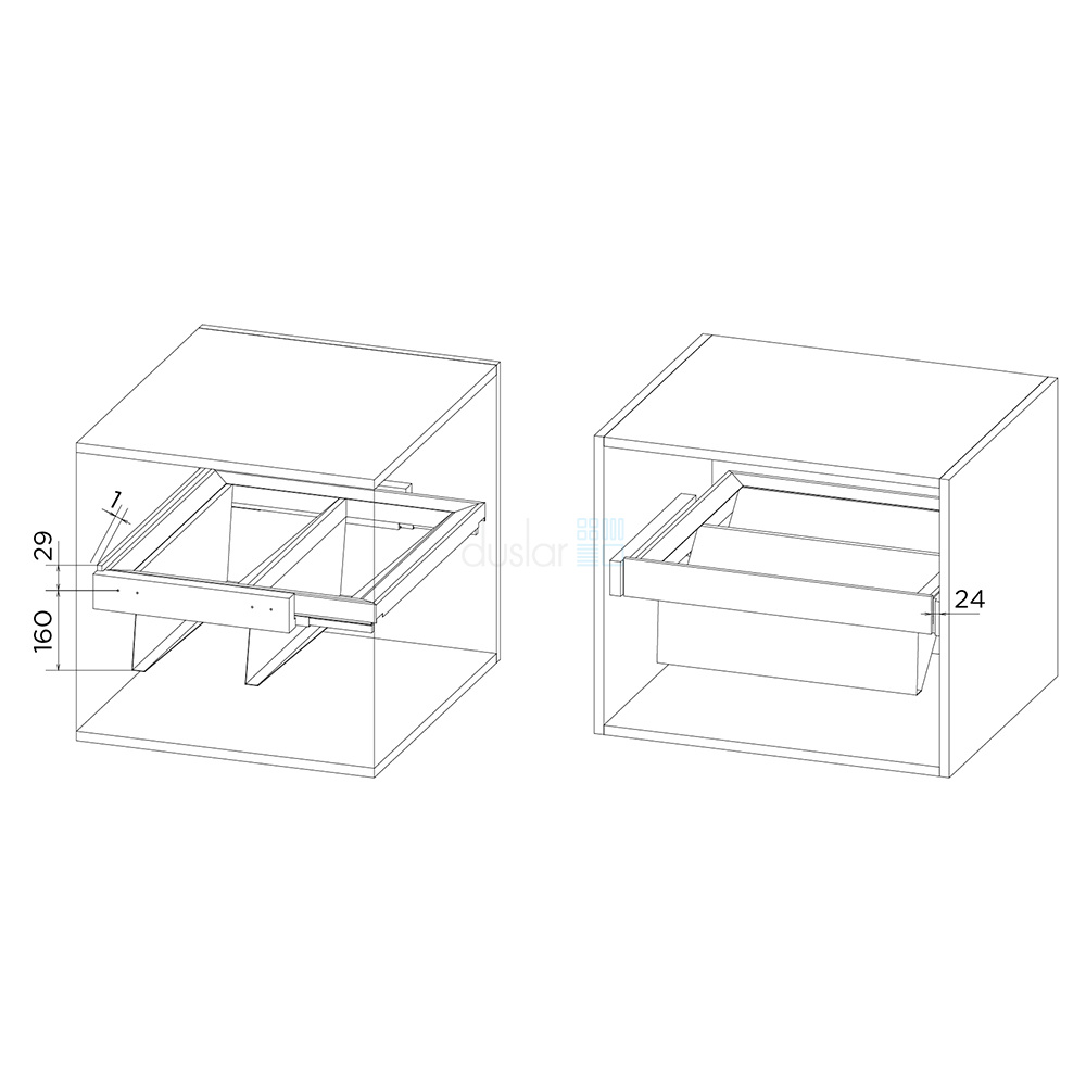 • Благодаря конструкции направляющих на липучках можно установить в корпуса с разной толщиной ДСП.