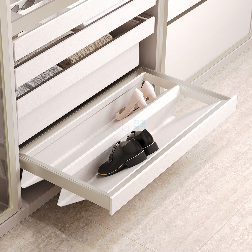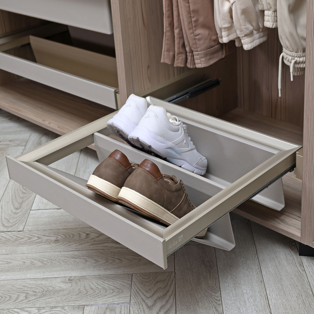 • Рекомендуем установить несколько выдвижных обувниц и ящиков из коллекции друг над другом для организации удобного хранения в шкафу или гардеробной.