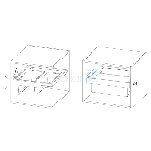 • Благодаря конструкции направляющих на липучках можно установить в корпуса с разной толщиной ДСП.