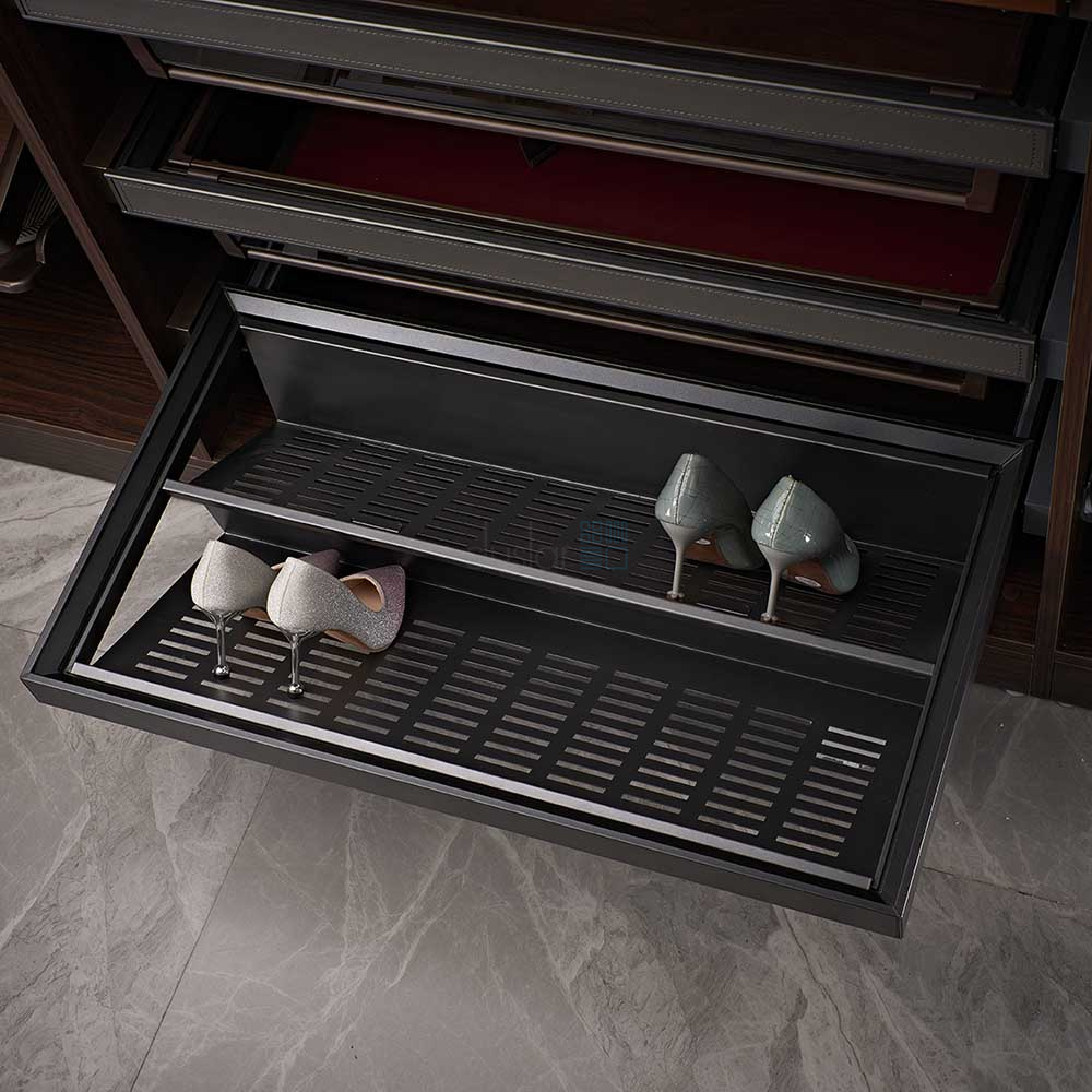 • Рекомендуется установить несколько выдвижных держателей друг над другом для организации хранения разных видов обуви в шкафу или гардеробной.