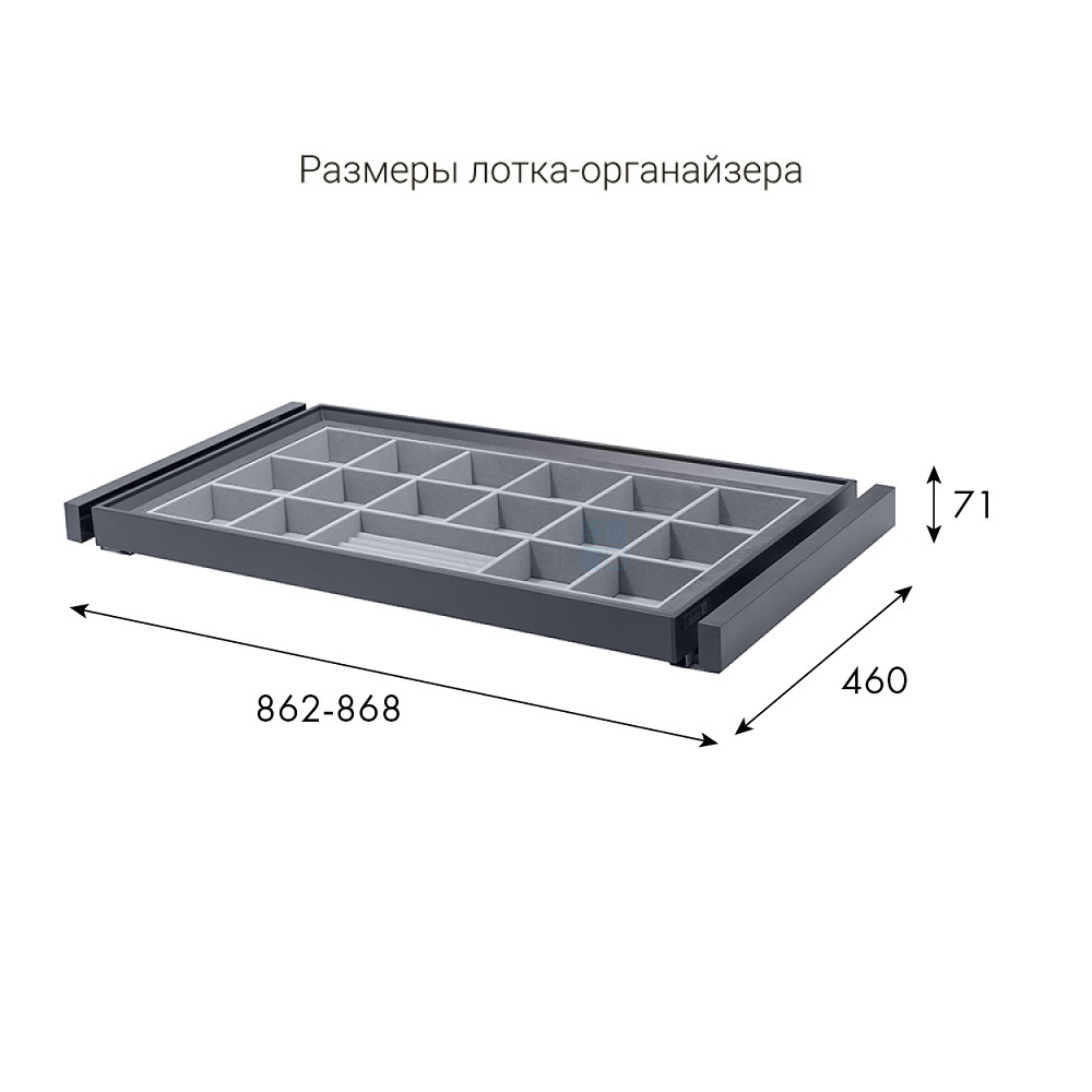 • Габариты лотка с направляющими: ширина 862-868 мм, глубина 460 мм, высота 71 мм.