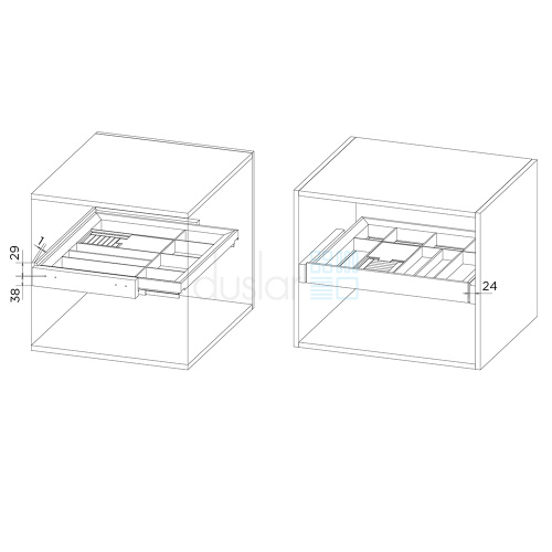 • Рекомендуем установить несколько выдвижных ящиков из коллекции друг над другом для организации удобного хранения в шкафу или гардеробной.