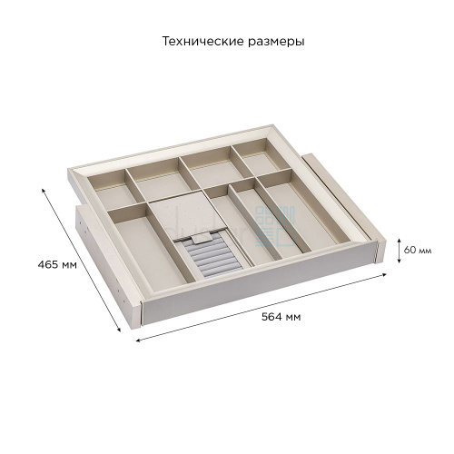 • Габариты лотка с направляющими: ширина 564 мм, глубина 465 мм, высота 60 мм.