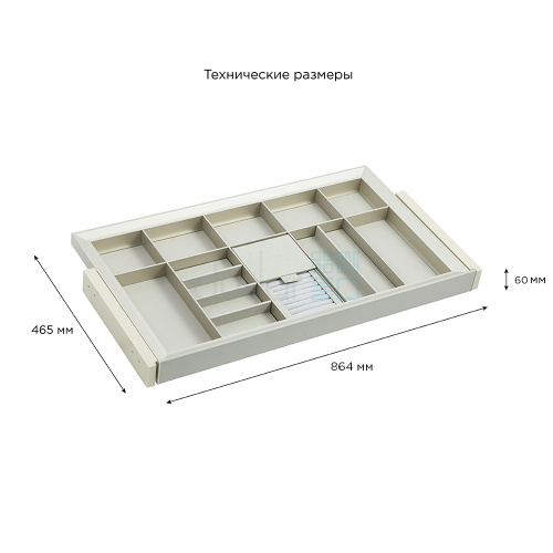 • Габариты лотка с направляющими: ширина 864 мм, глубина 465 мм, высота 60 мм.
