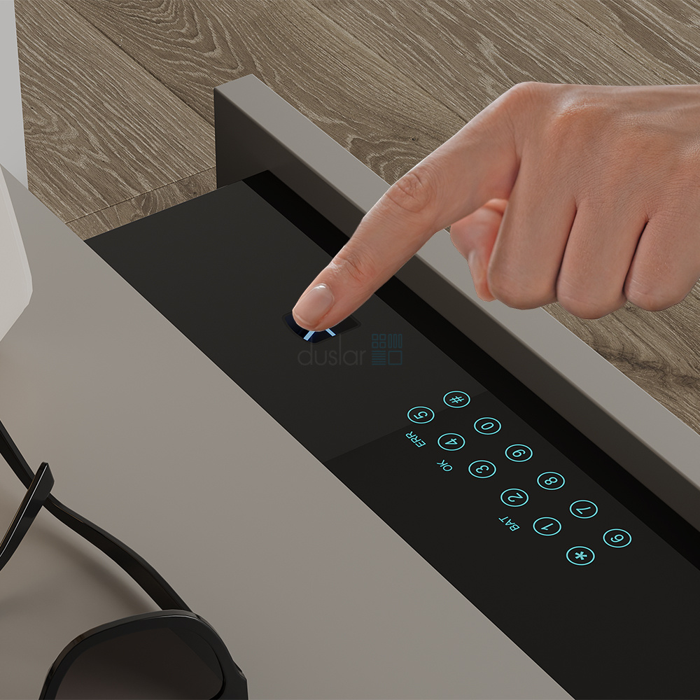 • Сейф легко открыть как с помощью отпечатка пальца, так и путем введения кода на сенсорной панели.